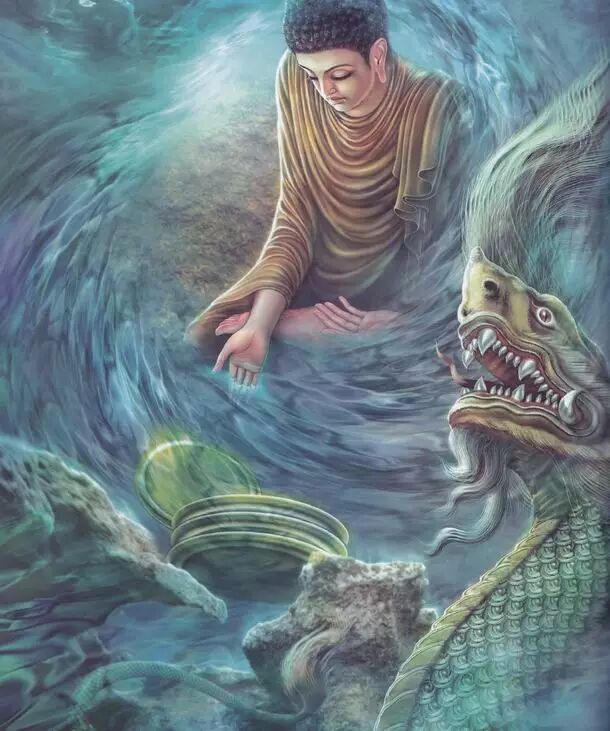悉达多沙门发愿成佛,将碗碟放入水中,发愿说:如若能成佛,则希望碗碟逆流而上。